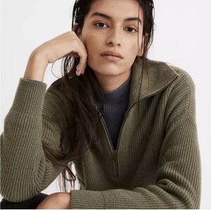 Madewell Glenbrook Half-Zip Pullover Sweater Merino Wool Ribbed Moss Green XL