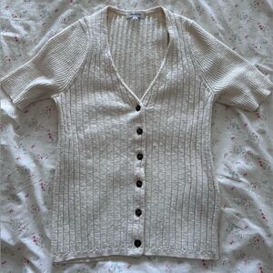 Madewell Glencrest Button-Front Sweater Tee in Oatmeal | Size M