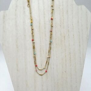 This gold-tone necklace features delicate knot details, suitable for adding a subtle, stylish touch to any outfit. Lightweight and versatile.