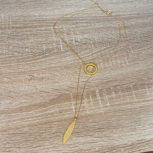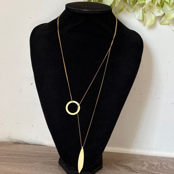 Madewell Gold Layered Necklace with Circle and Leaf Pendants
