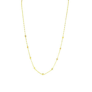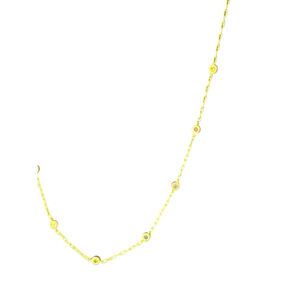 This Madewell gold-tone chain necklace features multiple small, round, bezel-set beads in a multicolor palette, including gold, pink, orange, and possibly light green hues, spaced along a delicate link chain. It fastens with a lobster claw clasp and includes an extender chain for adjustable length, measuring approximately 14 to 19 inches. A small circular tag with an "M" logo is attached near the clasp. The necklace appears to be in good pre-owned condition. Comes from a smoke free home!