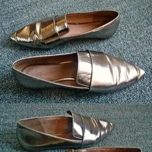 Stylish and modern, these patent leather flats in metallic gold by Madewell are head turners. These comfy flats spot pointed toe with a band across for a polished look. The metallic gold tone lends a dressy feel fits for any occasion. Leather upper and lining.