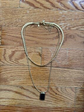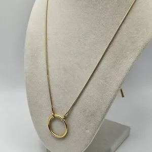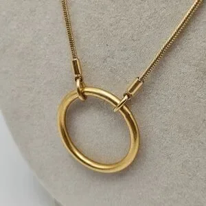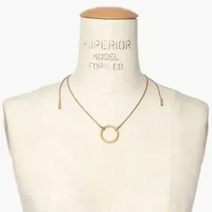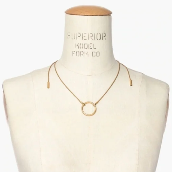 Madewell Adjustable choker necklace. Gold plated brass ring on an adjustable chain that can be worn as a choker or longer. Back ends slide trough clasp to suit any length. Sold out style H4047. Measures about 28" not including pendant. Excellent condition and smoke-free home.