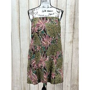 Madewell Goldie Mini Dress Size 12 Dark Coffee 100% Linen Tropical Print NWT