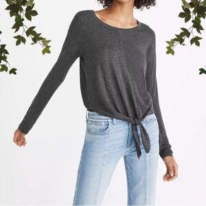 Madewell Gray Modern Tie Front Sweater Long Sleeve Tee. 55% viscose, 35% nylon, 10% other fibers. Size XXS.