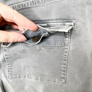 Stylish gray pants with front pockets. Features zipper detail at ankles. Perfect for casual wear.