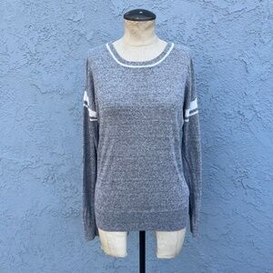 Madewell gray linen sweater in small. Nice varsity striped sleeves, cute with plaid pleated skirt for academia preppy vibes. Womens small