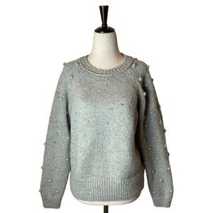 Madewell Gray Wool Blend Crew Neck Palmroy Bobble Sleeve Pullover Sweater M