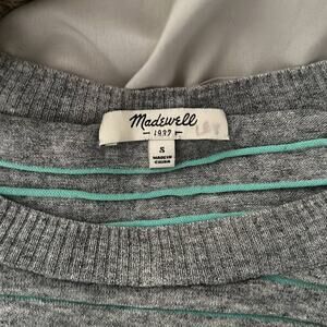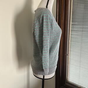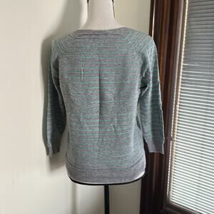 Lightweight sweater, striped top. Color is light mint green and gray. In great condition! No flaws or damage to note.