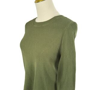Madewell Green Asymmetrical Hem Top Ribbed Long Sleeve Bohemian Versatile Small