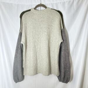 Madewell Green & Gray Colorblock Payton Sweater L, Wool-Alpaca Blend