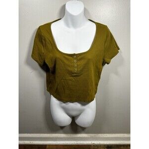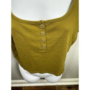 Madewell Green Ribbed Henley High Crop T Shirt Size L
