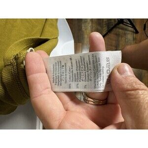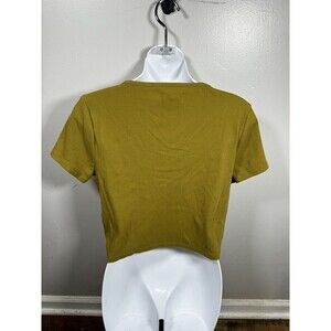 This Madewell T-shirt is the perfect addition to your wardrobe. Whether you're dressing up or down, the Henley neckline and ribbed texture make it a stylish and comfortable choice. The high crop design adds a trendy touch, while the green color adds a pop of color to any outfit. The shirt is a size L and has a regular fit, making it a versatile option for any woman. Don't miss out on this must-have piece!