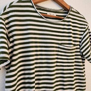 Madewell Green & White Striped Tshirt w/ Pocket & side suits