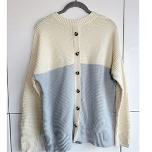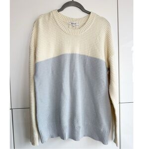 Madewell Greensboro Button Back Knit Sweater Ribbed Blue Yellow Size Small