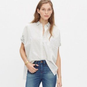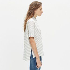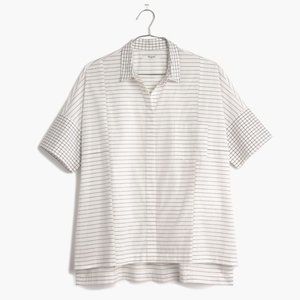 Madewell Grid-Mix oversized relaxed white cotton short sleeve button up C5712