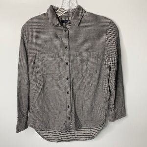 Madewell Gringham Long Sleeve Boyfriend Button Up XXS Black White