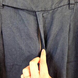 100% Linen. In excellent condition. Side and back pockets. Zip front. Measures approximately 15 inches across at waist, 13 inch rise, and a 30 inch inseam
