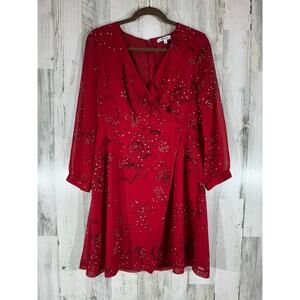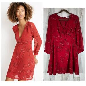 Madewell Hazelwood Faux Wrap Mini Dress Size 10 Red Windswept Floral Holiday