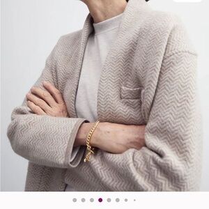 Madewell Herringbone Beige Merino Wool Mattson Sweater Coat Sz Large