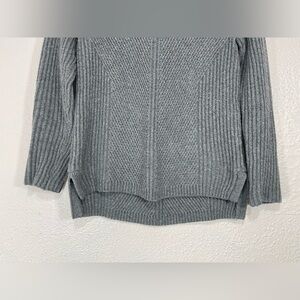 Madewell Hexcomb Texture Sweater Gray Crewneck Pullover Knit Style Women’s Size Small. High low hem, side hem slits, and long sleeves. 62% Cotton, 20% Viscose, and 18% Nylon. Hand wash. Style #E5058.