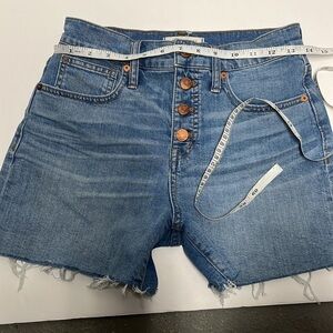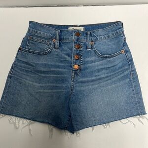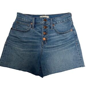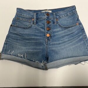 Madewell High Rise Buttonfly Jean Shorts 25 . EUC. Inseam is approximate 4” (not folded) and rise is 10”.