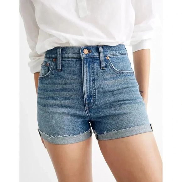 Madewell High Rise Denim Shorts Medium Wash Blue Cotton Raw Hem Cut Off Size 27