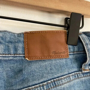 Madewell High Rise Slim Boyjean Raw Edge Hem Medium Blue Wash Distressed Pants