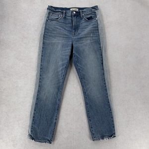 Madewell High Rise Slim Crop Boy Jeans Medium Wash Denim Distressed Womens.