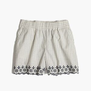 Madewell High Waist Striped Shorts with Navy Blue Embroidery Size Xl 100% Cotton