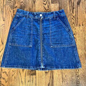 Madewell High-Waisted Denim A-Line Mini Skirt with Zipper Front, Size 26
