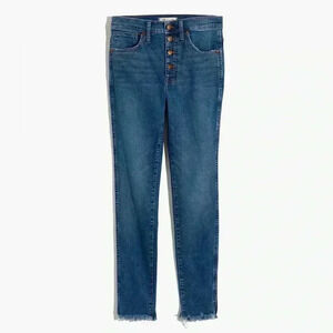 Madewell Highrise 10” Skinny Jeans Size 24P. 4 Button Closure. Rough Hem.