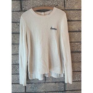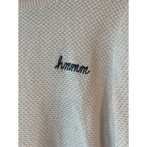 This embroidered Madewell knit top is ideal for cozy days or nights out! With its embroidered detail “hmm” it adds a bit of fun and quirkiness to any outfit.