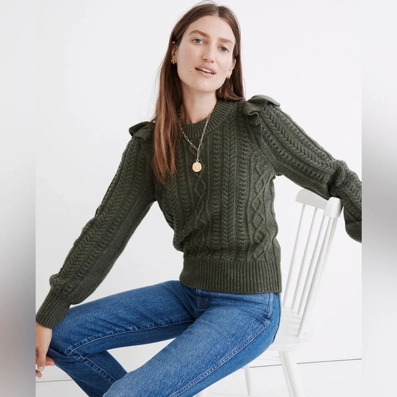 Madewell Hollydene Ruffle-Shoulder Pullover Sweater wool comfy feminine