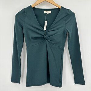 Madewell Hunter Green Twist Front Long Sleeve Tencel Jersey Knit XXS Shirt NWT
