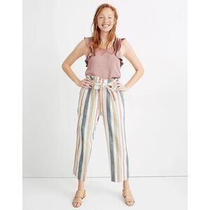 Madewell Huston Crop Pant Womens S Multi Stripe Linen Blend Tie Waist Pull On