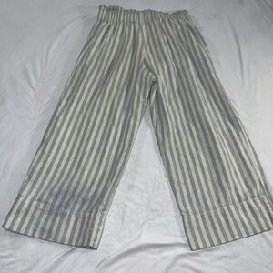 Madewell Huston Crop Pants Blue White Stripe Linen Blend Wide Leg Tie Waist Sz M