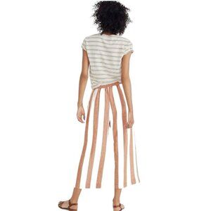 Madewell Huston Linen Blend Wide Leg Crop Pants Brown White Stripe