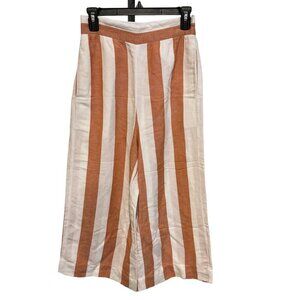 Madewell Huston Linen Blend Wide Leg Crop Pants Brown White Stripe in a size XS