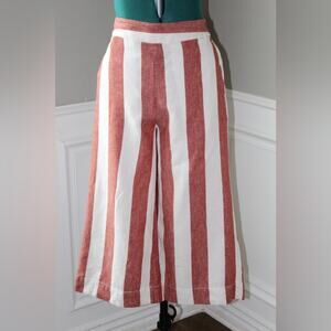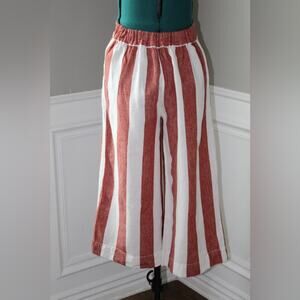 Madewell Huston Wide Leg Linen Crop Pants Red White Stripe Linen Pull-On Small