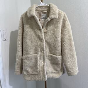 Madewell Jacket Women's S Cream Coat Sherpa Faux Fur Mid Length Cozy Button Up