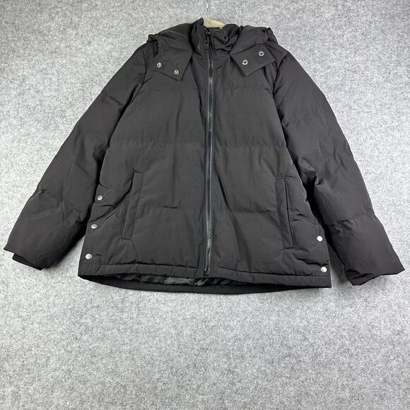 Madewell Jacket Womens XL Black Hooded Quilted Puffer Parka Coat Full Zip Winter