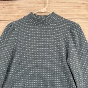 Item: Madewell Jacquard Puff-Sleeve Mockneck Top Womens Small Blue White