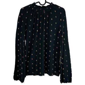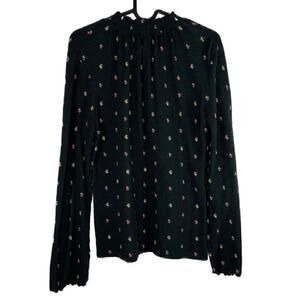 Madewell Jaquard Black Mockneck Rainbow Floral Print Retro Top Size Medium