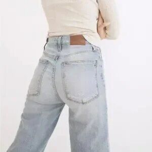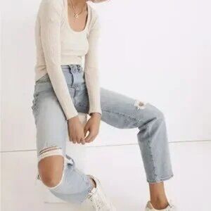 Madewell Jean Perfect Vintage Straight High Waist Danby Wash: Knee-Rip Edition Boho 90s Size 24 #ND515