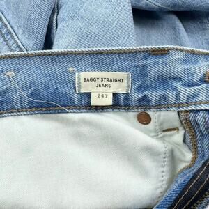 Madewell Jean Womens 24 Tall Blue Baggy Straight Leg Raw Slit Side Leg Hem