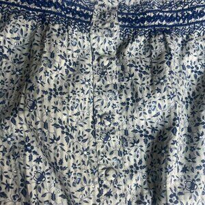 Madewell Jeannette Top Blue Floral Puff Sleeve Cropped Back Buttons XS New WOT