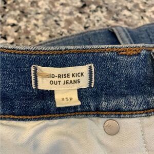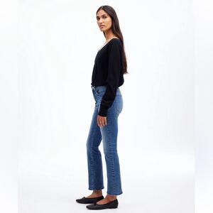 Madewell Women's Petite Kick Out Crop Jeans in Oneida Wash. The cut: an evolution of our fan-favorite Cali Demi fit, these mid-rise cropped jeans have a kicked-out flare leg and the holds-you-in sorcery of our Magic Pockets in front.