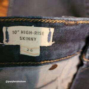 Madewell Jeans 26 Skinny 10" Hi Rise Tummy Control Stretch Dark Wash Denim