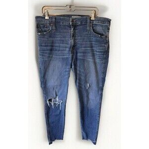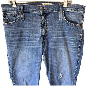 Madewell Jeans Distressed Size 34P 10" High Rise Skinny Blue Raw Hem-*READ* wear in the crotch